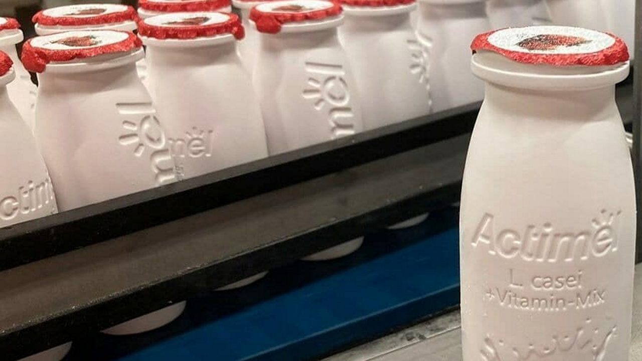 Danone está eliminando la etiqueta de las botellas de Actimel como un paso más para optimizar la circularidad de sus envases